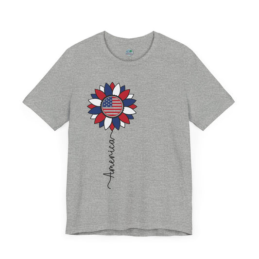 American Sunflower | July 4th | Independence Day | Flag | Adult Jersey Short Sleeve Tee