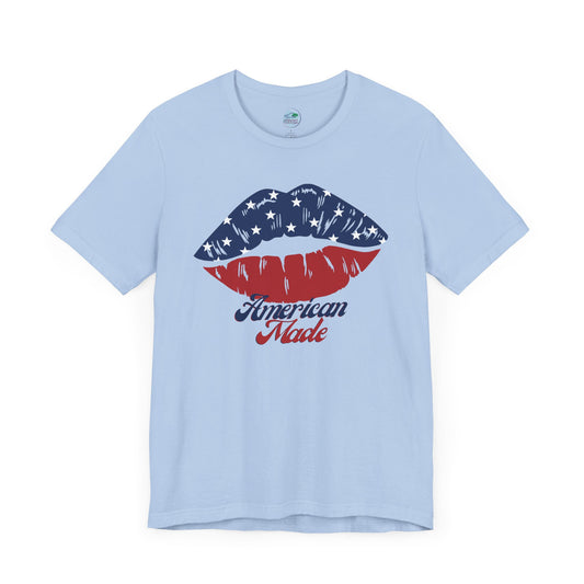 American Made | Lips | Kiss | July 4th | Independence Day | Flag | Adult Jersey Short Sleeve Tee