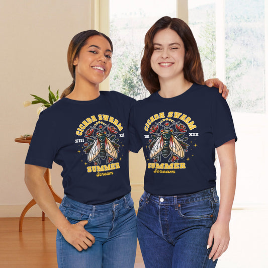 Cicada Swarm | Double Emergence | Summer | 221-year Brood Reunion | 2024 | Adult Jersey Short Sleeve Tee
