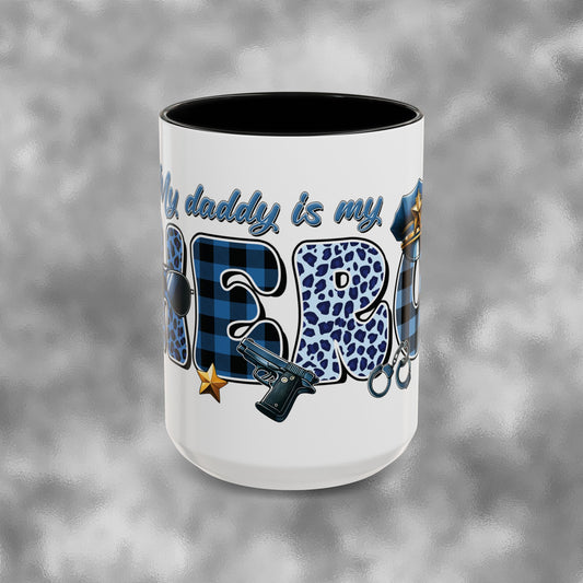 My Daddy is my Hero | Father's Day | Police Officer | Dad | Blue Line | Blue Lives | Accent Coffee Mug (15oz)
