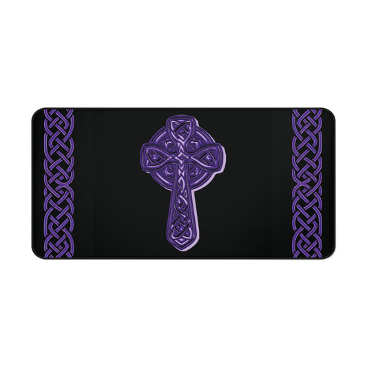 Celtic Cross Desk Mat — Black with Purple Celtic Knot Accents